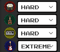 Decide what instruments and their difficulty you play against.
